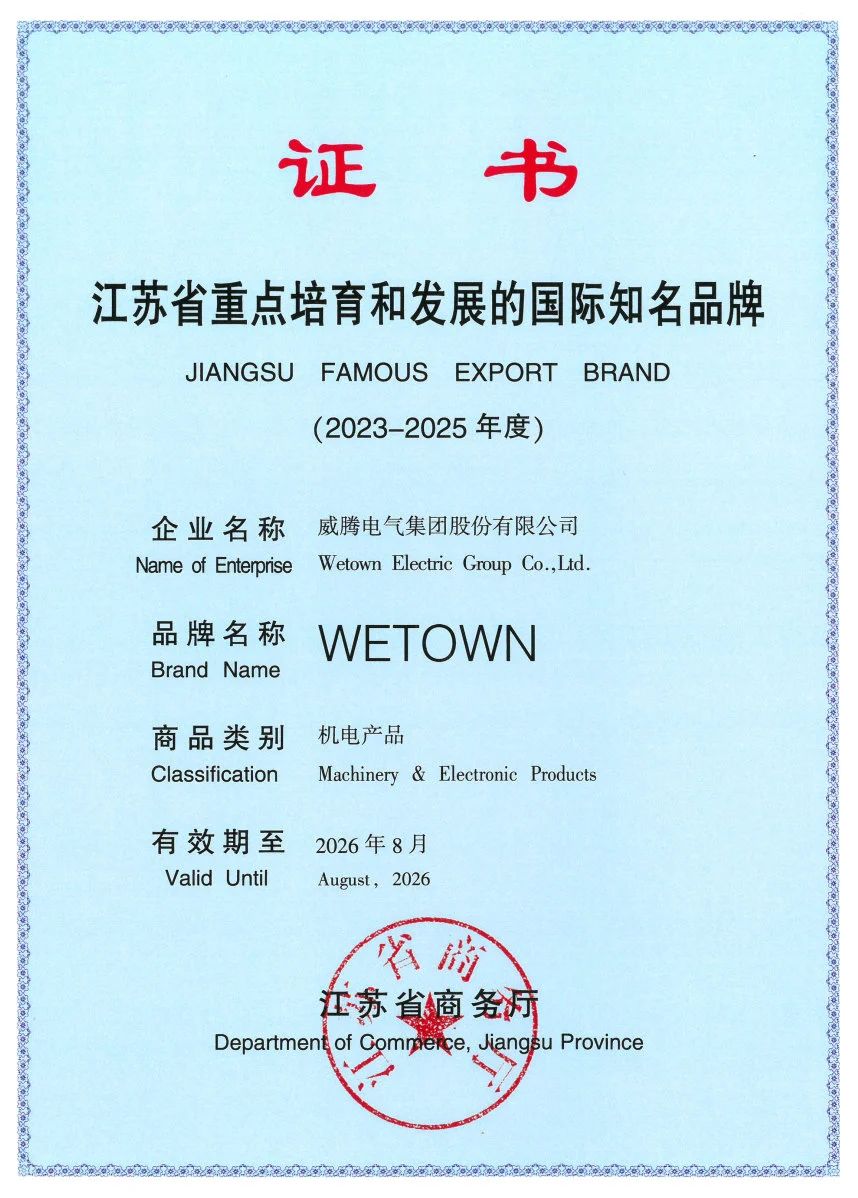克日,江苏省商务厅宣布了2023-2025年度江苏省重点培育和生长的国际着名品牌名单,尊龙凯时电气WETOWN品牌榜上著名。