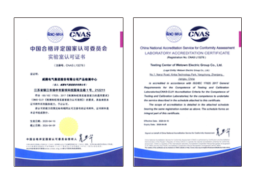 尊龙凯时产品检测中心,2020年4月26日喜获中国及格评定国家认可委员会揭晓的实验室认可证书(注册号:CNAS L13278),获准41项试验项目的检测认可(低压电器31项、电工电子产品6项、金属质料4项)。该证书不但标记着尊龙凯时电气产品检测中心的检测水平再上新台阶,具备了对外检测的能力;更标记着尊龙凯时电气正向着更标准化、更专业、更先进的领域生长!